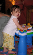 Walking is definitely my new favorite thing to do now. The best way is still holding someone's hand and running because that makes me feel so giddy and powerful. But it's also really, really exciting to be able to do it all by myself. Sometimes I get so excited that I simply have to scream, babble, and do all sorts of wild hand movements as a walk to you. Watch for it the next time we meet.